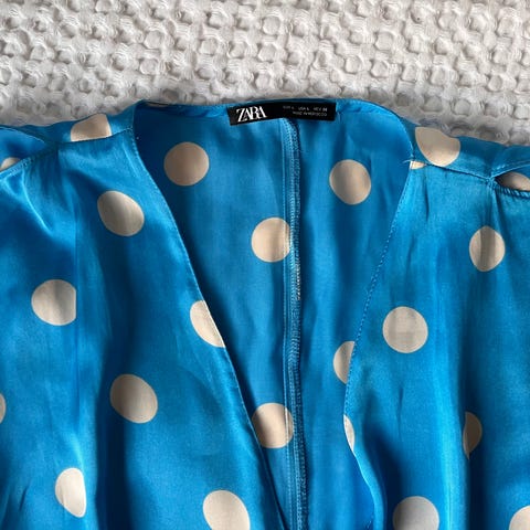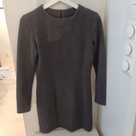 Vaaleanpunaiseen hieman vivahtava, puuterinvärinen mekko. Merkki Zara ja koko 11-12 eli M/L. Hyväkuntoinen. Kiva päällä. Edessä ruskea napitus. Nouto tai postitus 8.90.