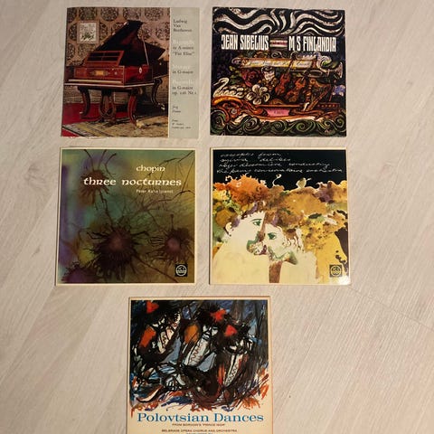 Sekalainen setti vinyylilevyjä. Osassa pientä käytön jälkeä. Meillä ei enää toimivaa vinyylilevysoitinta, joten testausta vailla. Yleisilme siisti ja olleet kaikki kunnossa kun niitä viimeksi on soitettu.