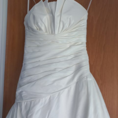 Todella upea ja uniikki vintage -henkinen hääpuku. Puolimerenneito malli, paljon blingiä ja valossa heijastavia kuvioita. Helmassa vahvikekangas jonka ansiosta laahus tulee kauniisti perässä ja pysyy paremmin "auki". Puku on vain sovitettu.