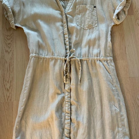 Espritin kaunis beige pellavasekoitetta oleva mekko (tai halutessaan paita). Koko 34, käytetty vain pari kertaa koska minulle liian pieni. Irroitettava vyö. Säilytyksestä rypyssä kuvissa.