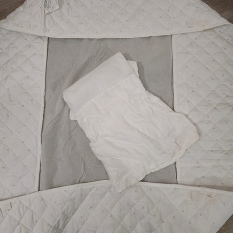Myydään safari aiheinen beige pinnasängyn pehmuste puuvillaa, pussilakana ja tyynyliina puuvillaa sekä pinnasängyn päälle ripustettava harsolakana, jolla saa luotua vauvalle pesämäisen tunnelman. Pehmuste 36 cm korkea ja 165 cm leveä, lakana 130 cm x 90 cm. Ostettu uutena. Ei tahroja. Ollut käytössä yhdellä lapsella. Ei lemmikkejä eikä tupakoida. Hinta 35 eur. Nouto Riihimäen Citymarket tai Prisma tai postitus 5,90. Katso myös muut myymäni tuotteet. Paljon lastenvaatteita ja tavaroita myynnissä.