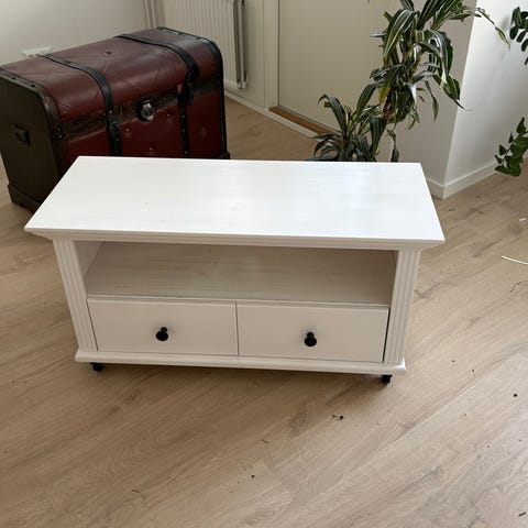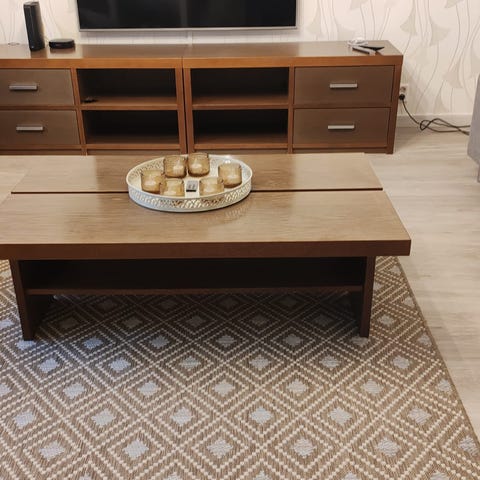 Hyväkuntoinen tasopöytä. Paino noin 15-20 kg. Materiaalina prässättyä puupurua.