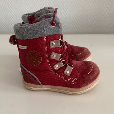 Siistikuntoiset Reiman violetit/viininpunaiset talvikengät. Joustavat nauhat ja vetoketjukiinnitys. Sisämitta 14,5cm, pohjallisen leveys n.5,5cm.