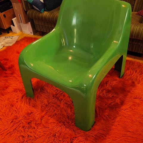 Ultimaattinen suomidesign-helmi tarjolla. Näitä ei ihan joka paikassa tule vastaan. Kyseessä siis Ahti Kotikosken vuonna 1968 suunnittelema upea Anatomia tuoli. Lujitemuovista eli lasikuidun ja täyteaineiden yhdistelmästä valmistettu todella kestävä tuoli sopii erinomaisesti sekä sisä- että ulkokäyttöön!