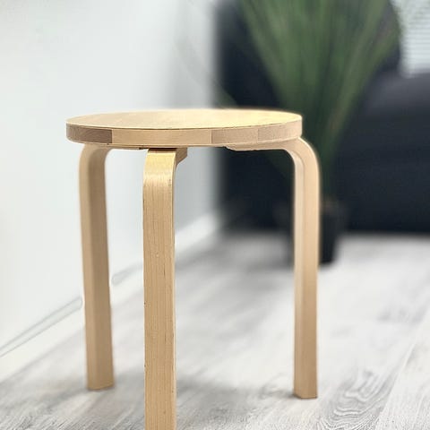 Klassinen Aalto-jakkara ihanan iloisen värisellä istuimella. Hyväkuntoinen.