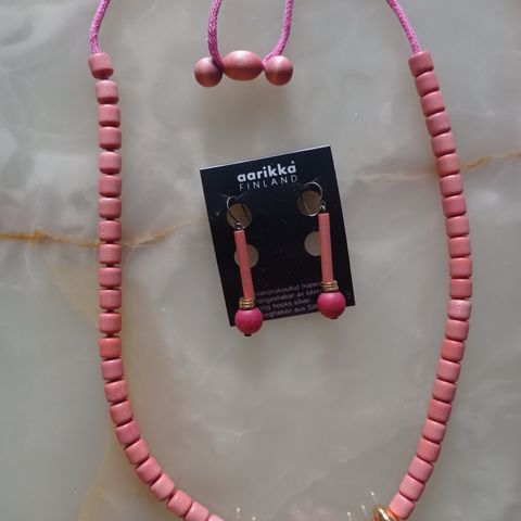 Kuvan mukaiset aarikan kaulakoru ja korvakorut 2000-luvun alusta puuta ja metallia ketjun pituus 40cm hinta setille 15e nouto tai postitus 2,70e kirjeenä seurannalla 6,90e