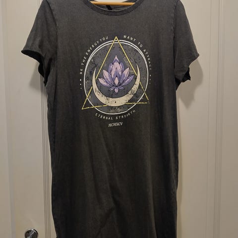 Täysin pitämätön musta ois-merkin mekko, menee myös tunikana. V-mallin kaula-aukko, joka ei ole syvä. Rypytykset vyötärön yläpuolella. 3/4 hihat. Noin polvipituinen. 95% viskoosia, 5% elastaani.