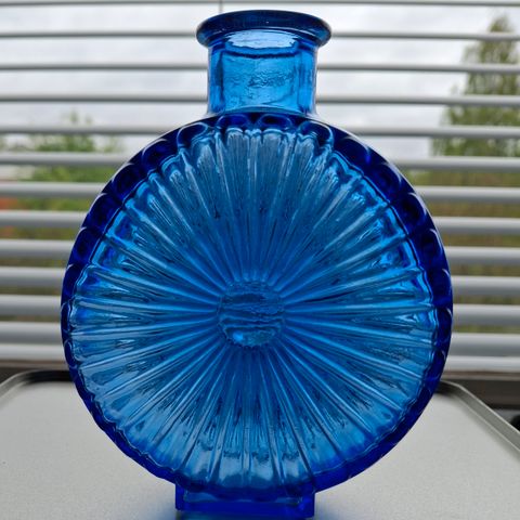 Myydään Riihimäen lasin sininen muottiin puhallettu pullo. Korkeus 21,5 cm, sivut 11cm ja 6,5 cm. Pullon suuaukko 2,5 cm. Ehjä, virheetön. Hinta 70,- lisäksi edullinen Toridiili toimitus.
