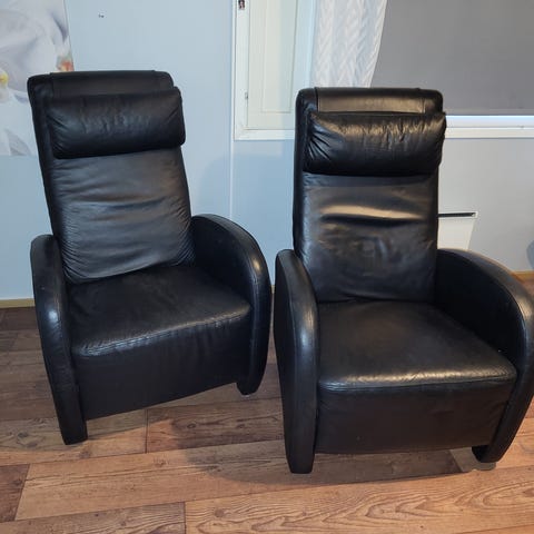 Kaksi nahkaista nojatuolia hinta 250 e yhteensä