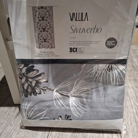 Myydään 1 kpl Vallila kirjo, gold -sivuverho. Mitat: Leveys - 140cm, korkeus - 250cm. Avaamaton pakkaus. Myynnissä myös toinen kpl vastaava sivuverho jota on hieman käytetty, mutta ehjässä kunnossa. Voin myydä molemmat yhteishintaan 30e.