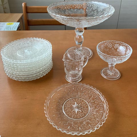 Myyntiin Nuutajärvi Apila-sarjan lasiastioita.
