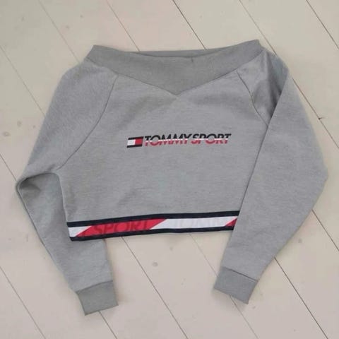 Uusi Tommy Hilfigerin harmaa body kokoa L. Haaroissa nepparit, molemmissa kyljessä lukee ”Tommy Girl”.