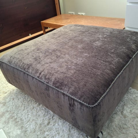 Myydään hyväkuntoinen rahi, mitat 50 x 60 cm, korkeus 37 cm. Päällinen on irrotettava ja pestävä.