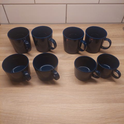 Myydään lähes käyttämättömät Iittalan kahvikupit ja asetit neljän settinä. Ehkä Teema-sarjaa?