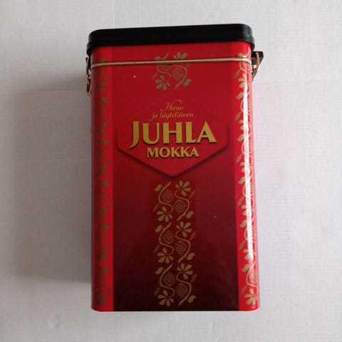 Kuvanmukainen, käyttämätön musta kahvipurkki. Koko 12 x 7,6 x 19,5. Kuvatessa tullut heijastuksia, joita ei purkissa ole. Nouto tai postitus; myös ToriDiili -lähetys käy.