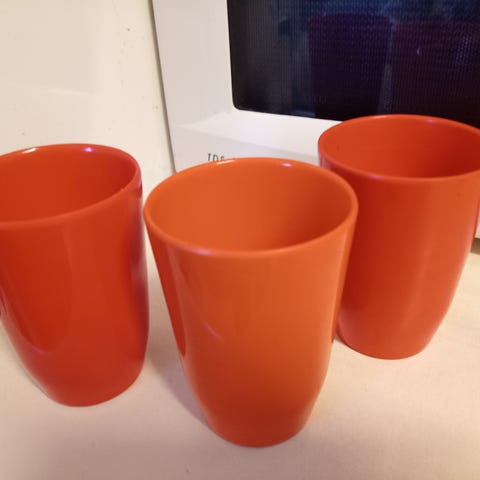 Ihanat oranssinpunaiset korit. Sopii retroilijan sisustukseen. Ehjät ja siistit. Korien halkaisija noin 27cm.