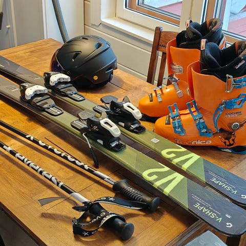 Laskettelupaketti, sukset, sauvat ja monot