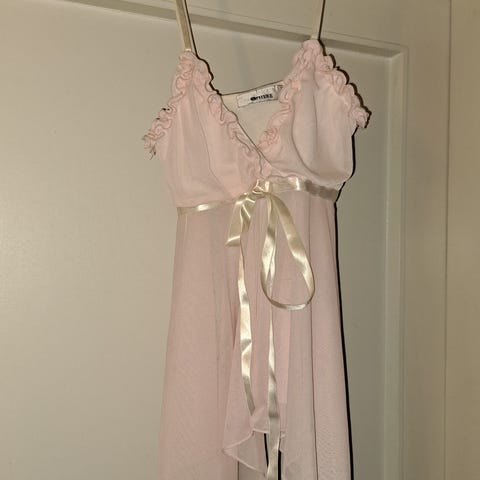 Vyötäröllä koristeena nauhat sidottaviksi.
