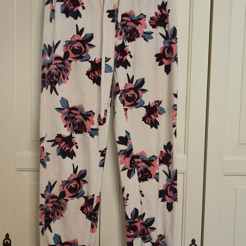 Joustavaa kangasta. Edessä 4 kpl koriste vetoketjua. Haarasta-lahkeeseen: 74 cm, vyötärön ympärysmitta venyy suuremilleen: 80 cm.