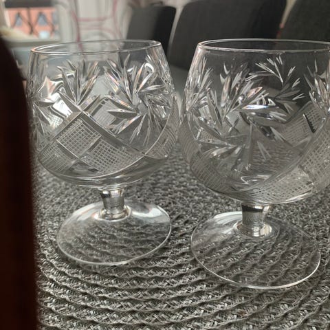 Myydään kristallilaseja kahta kokoa.