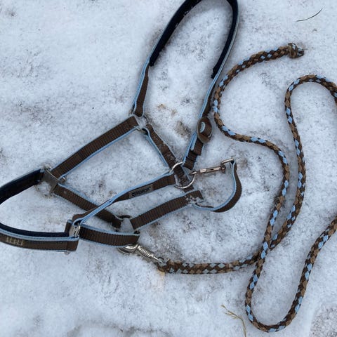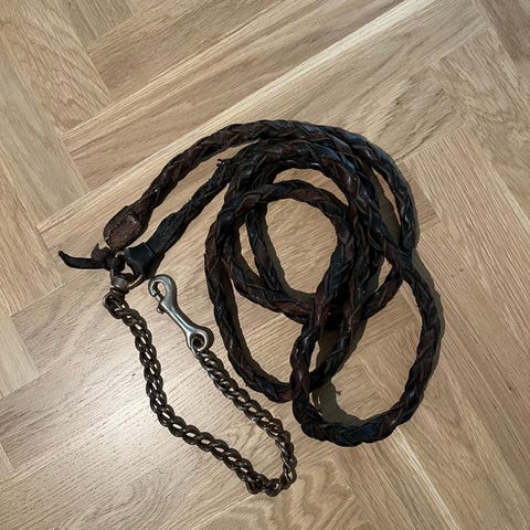 Todennäköisesti käyttämätön. Sininen, neopreeniä. Narun pituus n. 110 cm, ketjun pituus n. 75 cm.
