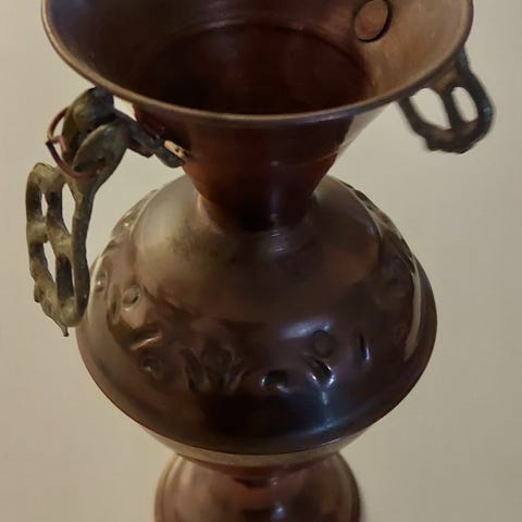 Nätti, virheetön kauniisti kuvioitu maljakko. Kuparia?