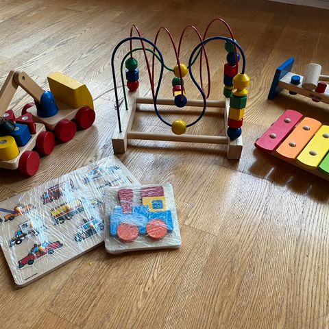 Ihana setti puuleluja tukemaan pienen oppimista. Soveltuu vauvoille ja taaperoille, ja toimii myös lahjana!