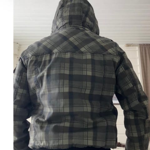 Käyttämätön vuorellinen työtakki lämpimällä hupulla! Hihoissa tuulisuojat! Hyvin taskuja ja oma paikka esim. henkilökortille! Löytyy myös koot L ja XL