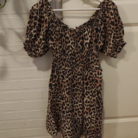 MGO-merkkinen, eläinkuosinen mekko, jossa kerroksellinen leikkaus sekä kuminauharypytys hihansuissa.