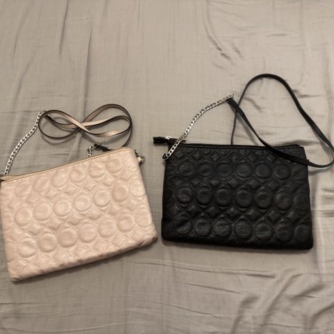 Hyväkuntoiset olka/crossbody laukut. Musta ja valkoinen. Valkoisessa hopeinen ketju, mustassa kultaiset tehosteet. Vaikka huolettomiksi festarilaukuiksi kun ei halua sitä tonnin laukkua mukaan ottaa reissumenoihin!