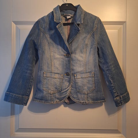 Eläimettömästä kodista myyntiin h&m farkkutakki koossa 134. Siistissä kunnossa. Nappilistan napeissa nepparikiinnitys.