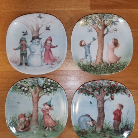 Arabia Neljä vuodenaikaa seinälautanen Kevättanssi. Suunnittelija Kaarina Kaila.