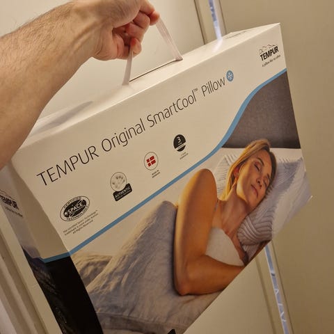 Ostetty syksyllä 2024. Tyyny ollut reilu kuukauden käytössä tyynysuojuksen kanssa, jonka jälkeen todettu ettei sovi itselle. Sen jälkeen säilytetty laatikossa vaatehuoneessa.