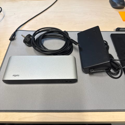 Elgaton thunderbolt Dock. Huom pelkkä Dock ei mitään kaapeleita mukaan, siksi edullinen.