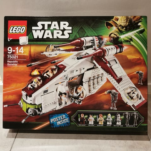Myydään Lego Star Wars 75021 Republic Gunship-setti. Kaikki osat, figuurit, ohjeet ja kohtalaisessa kunnossa oleva paketti löytyvät. Alusta säilytetty kirjahyllyssä, joten osassa valkoisia ja harmaita paloja on vaalentumaa/kellertymää. Hahmot ovat kuitenkin erittäin hyvässä kunnossa (kts kuvat).