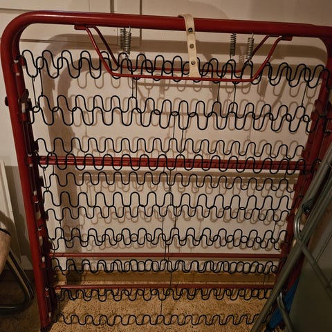 Kasaan menevä vuode. Jaloissa ruostetta.
