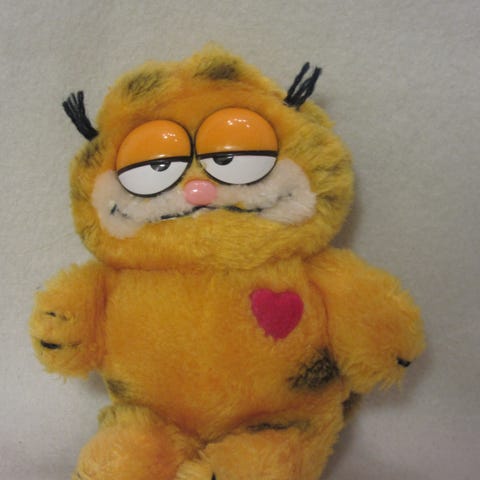 Hieno pehmolelu Karvinen. Istuva sarjakuvahahmo. Vintage Karvinen v. 1981. Korkeus n. 24 cm. R. Dakin & Company, San Francisco. CA. Hohoojaa