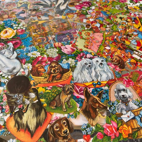 Paljon erilaisia kiiltokuva-arkkeja. Hinta ja kunto kerrottu jokaisen kuvan kohdalla.