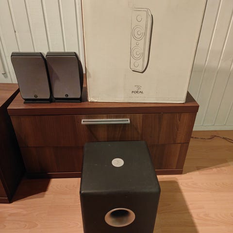 Myynnissä hyväkuntoiset focal pääkaiuttimet + pöytäjalusta.