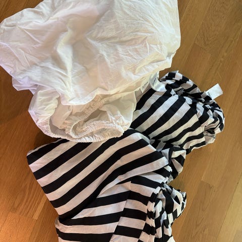 Jyskin lakanat. Valkoinen satiinilakana. Lila normi puuvillainen. Sopii 80 tai 90 levyiseen sänkyyn. Ostin 120 kokoiseen, ja siihen liian kapeat.