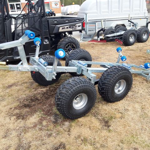 Vaunussa on kaikki mitä laatuvaunuun tarvitaan; lehtijouset, iskunvaimentimet, turvavinssi, säädettävät synteettiset kölirullat, säädettävä vinssipukki + LED valoilla.