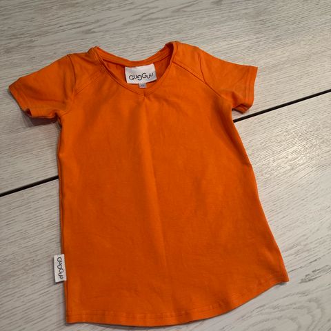 Myydään Gugguu t-paita. Hyvin tyköistuva. Vispipuuron värinen. Koko on 80.