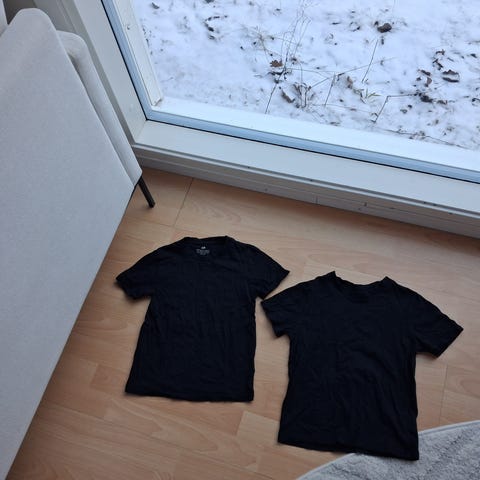 Kolme sinisen sävyistä t-paitaa 122-128 kokoiselle. Tummansininen Peuhu 120, turkoosi Cubus 110/116 ja hihaton raidallinen Ciraf 128. Kaikkia käytetty tuossa 122-128 koossa.