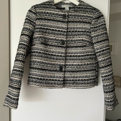 Musta, tyköistuva bleiseri. Edessä ja hihoissa napitus. Kevyet olkatoppaukset. Uudenveroinen!