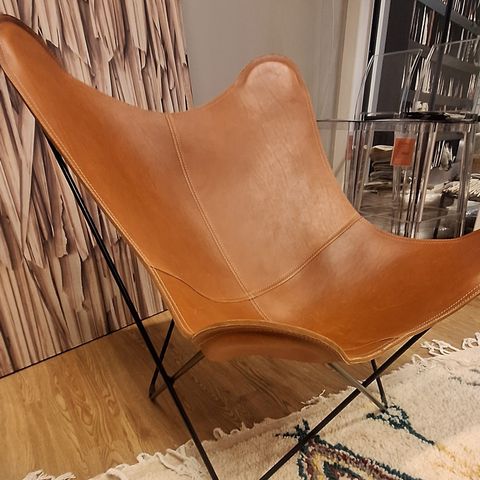 Laadukas KARE Desingn lepakkotuoli. Tuolissa on vakaa teräsrunko ja nahka on paksua ja erittäin kestävää satulanahkaa. Max 100 kiloiselle istujalle.