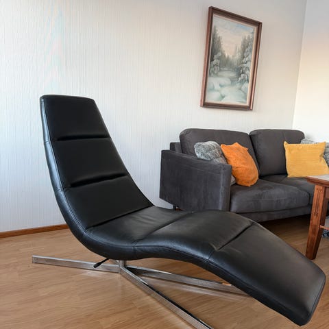 Uutta vastaava lepakkotuoli ruskeaa ”vintage”- antiikkinahkaa. Ollut lyhyen aikaa hyvin vähäisessä käytössä eikä tuolissa ole mitään käytönjälkeä. Runko kuparinruskean väristä terästä.