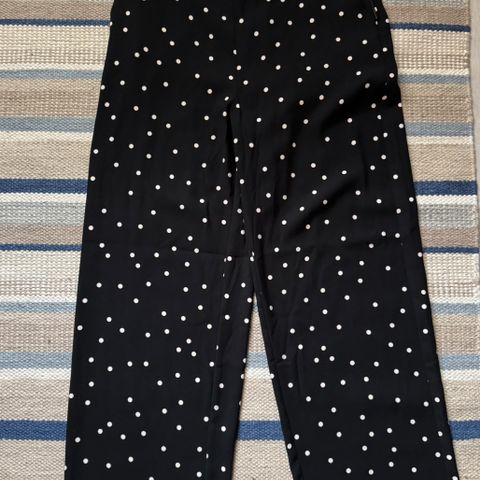Uudet upeat tumman siniset housut. Lahkeissa kullan väriset nepparit. Edessä sivutaskut, takana koristetaskut. Pehmeäpintainen paksuhko kangas joustaa hieman. Koko 38. Merkki Holly & Whyte by Lindex. Materiaali 77% polyesteri, 22% viskoosi, 1% elastaani. Uusi, laput kiinni.