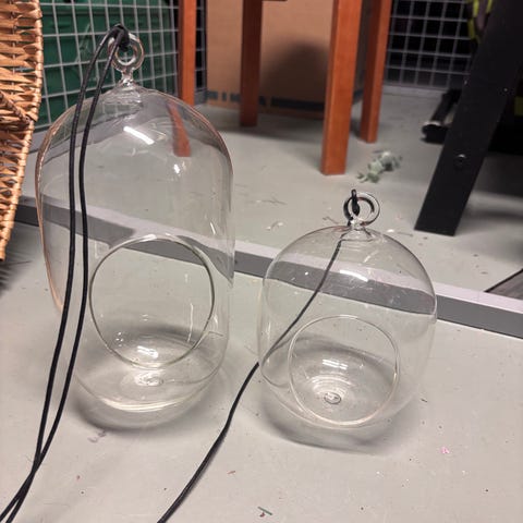 Kaksi ehjää lasimaljaa. Maljojen suuaukkojen halkaisija 10,5 cm, maljojen leveyttä hankala mitata, mutta paksuimmalta kohtaa ehkä n. 14 cm. Käytetty aiemmin kukilla, niin vedestä jäänyt sisäpintoihin hieman kalkkisaostumaa, mutta uskoisin sen lähtevän pois etikalla. Näillä saa tehtyä vaikka mitä, ovat tosi monikäyttöisiä ja kauniita.