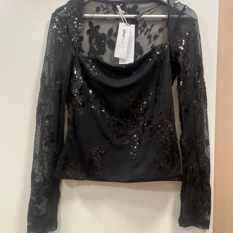 Upea musta hihaton paljettipusero. Etuosa paljetteja. Takaosa venyy. Koko M. Merkki Derhy. Materiaali