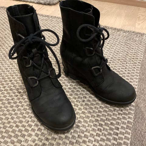 Käytetty Sorel kinetic koko 37 ainoa miinus on rissa pidike on pudonnut paikalta on kiinnitetty siihen paksu musta nauha ja toimii